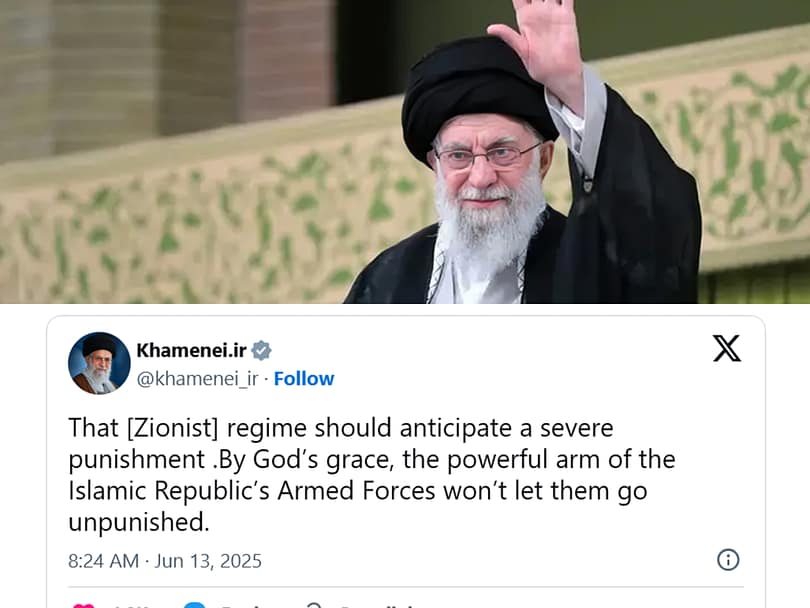 Iranian Supreme Leader Ayatollah Ali Khamenei has warned that Israel awaits severe punishment. Addressing the Iranian nation on X, Ayatollah Khamenei said that this morning the Zionist state committed a grave crime on our land with its evil and bloody hands. The enemy exposed its nature more than ever by targeting residential areas.