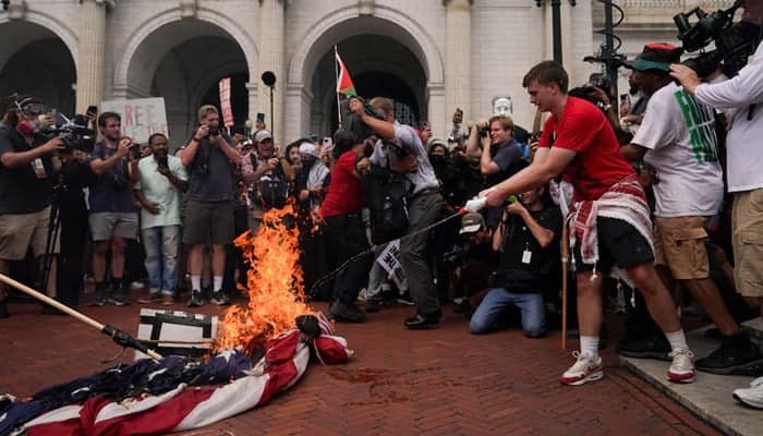 امریکی پرچم کو امریکا میں ہی آگ لگادی