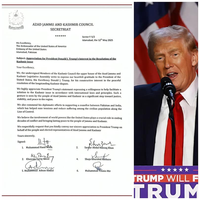Azad Jammu and Kashmir Council members have written a letter of thanks welcoming the US President’s statement on mediation on Kashmir.