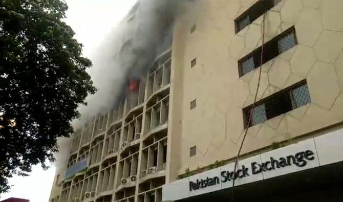 A fire broke out in the Pakistan Stock Exchange