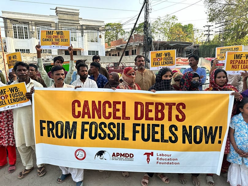 The protesters also called for the cancellation of debts related to fossil fuel projects. Zaighum Abbas, country program manager of Asian People’s Movement on Debt and Development said, “The IMF and WB’s lending for coal, oil, and gas extraction and infrastructure projects across the Global South is contributing to increasing greenhouse gas emissions and accelerating climate change. These projects in turn have caused forced displacement, loss of livelihoods, and destruction of ecosystems, exacerbating social inequalities and perpetuating cycles of poverty and vulnerability in the Global South.”