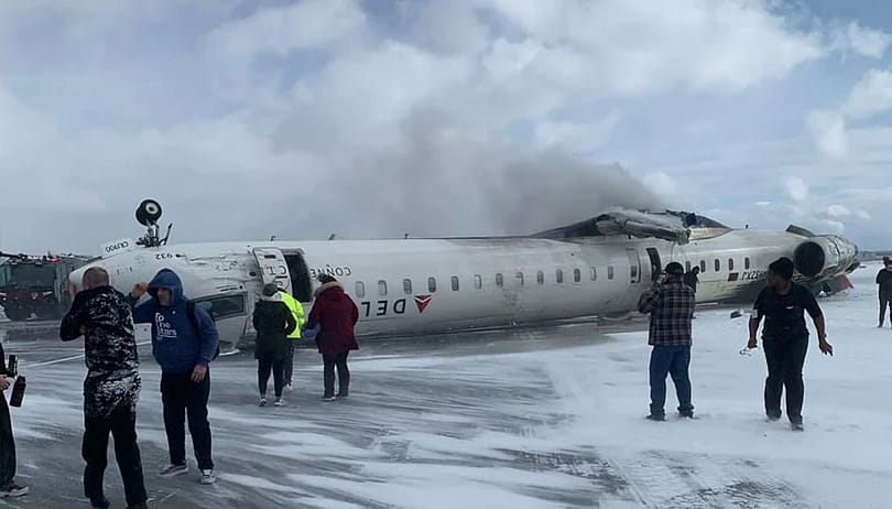 کینیڈا کے شہر ٹورنٹو میں پیئرسن ایئرپورٹ پر مسافر طیارہ لینڈنگ کے دوران الٹ گیا۔