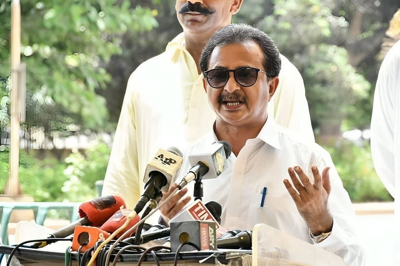 Leader PTI Haleem Adil Shaikh addressed the media outside the Sindh High Court in Karachi.