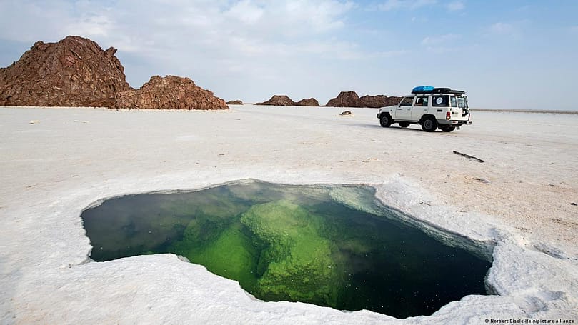 Ethiopia: Dalul, Ethiopia is home to one of the most unusual hydrothermal areas in the world, nothing but green acid pools, chlorine and sulfuric toxic gases. The trenches are no less than a doomsday mantra. The Dana Kal Depression, located on the border of Ethiopia and Eritrea, is one of the hottest and most inhospitable places on earth, with temperatures reaching 50 degrees Celsius. It does not rain. Dalul is one of the most unusual hydrothermal areas in the world. Travel, Local people prefer to travel by camel. Dalul is a word coined by the Afar people which means dissolution. A place called Dana Kal Depression in Ethiopia is rich in salt, also called white gold. It is also a source of livelihood for the local Afar people, they extract salt from here and sell it in the local markets, it is a very laborious and painstaking work.